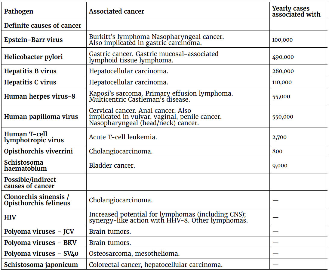 Table 1. Pathogens with a definitive and possible or indirect role in cancer causation.
